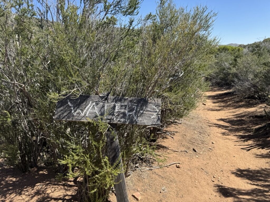 Ich war dann happy dass es genügend Wasserflaschen vor Ort hatte. Ein paar liebe Leute stellen sicher, dass wir Hiker so zum lebensnotwendigen Wasser kommen. Ich habe mir dann dort den Bauch gefüllt und meine Wasservorräte aufgestockt. Anschliessend habe ich mit einem anderen Hiker gesprochen. Ich habe ihm gesagt, dass ich gerne fünf Dollar in die Donationbox werfe, für diesen super Service.