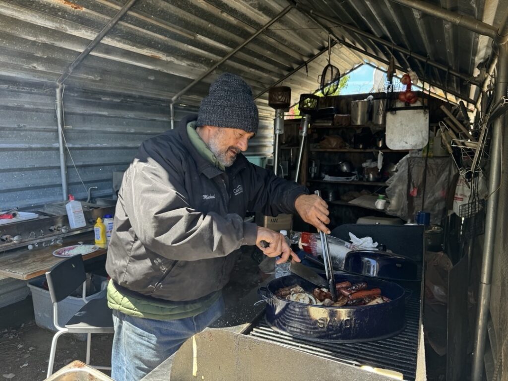 Wir haben dann unsere Ausrüstungsgegenstände getrocknet und ich wollte um 11:30 Uhr weiterlaufen. Ich habe mich bei Mike nochmals bedankt und mich verabschiedet. Er hat mir dann gesagt, dass es Hot Dogs und Hähnchen gibt. Als ich in seine grosse Pfanne geschaut habe, spickte mir der Rucksack fast vom Rücken weg.