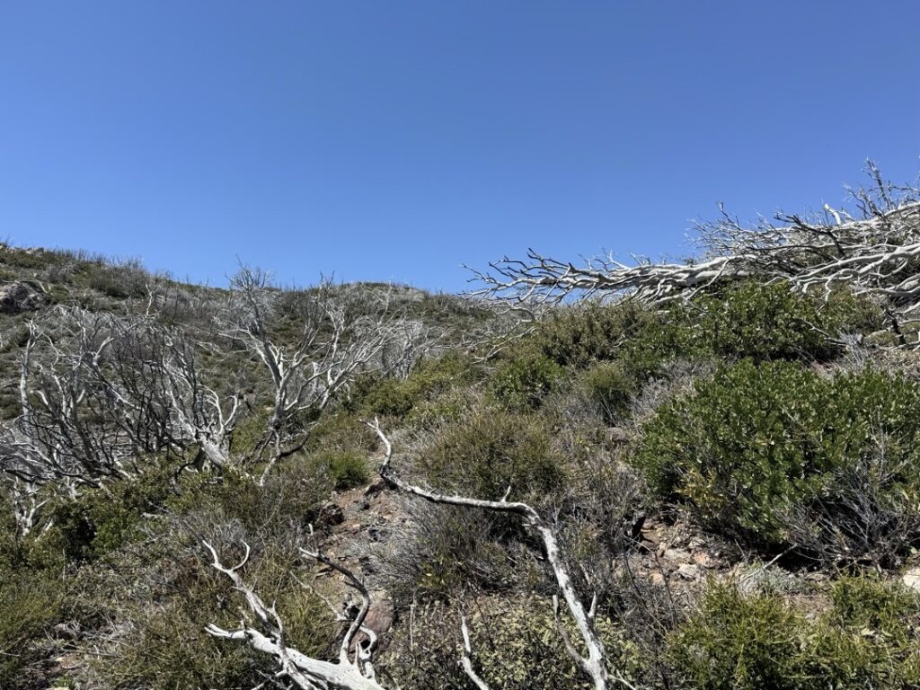 Bei Meile 163.3 kommt dann die Eagle Spring Junction. Von dort musste ich circa 70 Höhenmeter runter laufen um zu einer Quelle zu kommen. Das tönt erstmals nicht so schlimm. Es war aber eine echte Tortur, da ich mich durch Gebüsche mit und ohne Dornen und über Berge vom Baumstämmen nach unten kämpfen musste. Ein Weg war nicht ersichtlich. Dank der App hab ich die Quelle gefunden. Ich habe dann das Maximum an Wasser aufgefüllt. Dieser Prozess hat mich sicher 1 Stunde gekostet.
