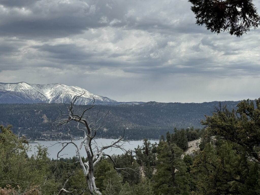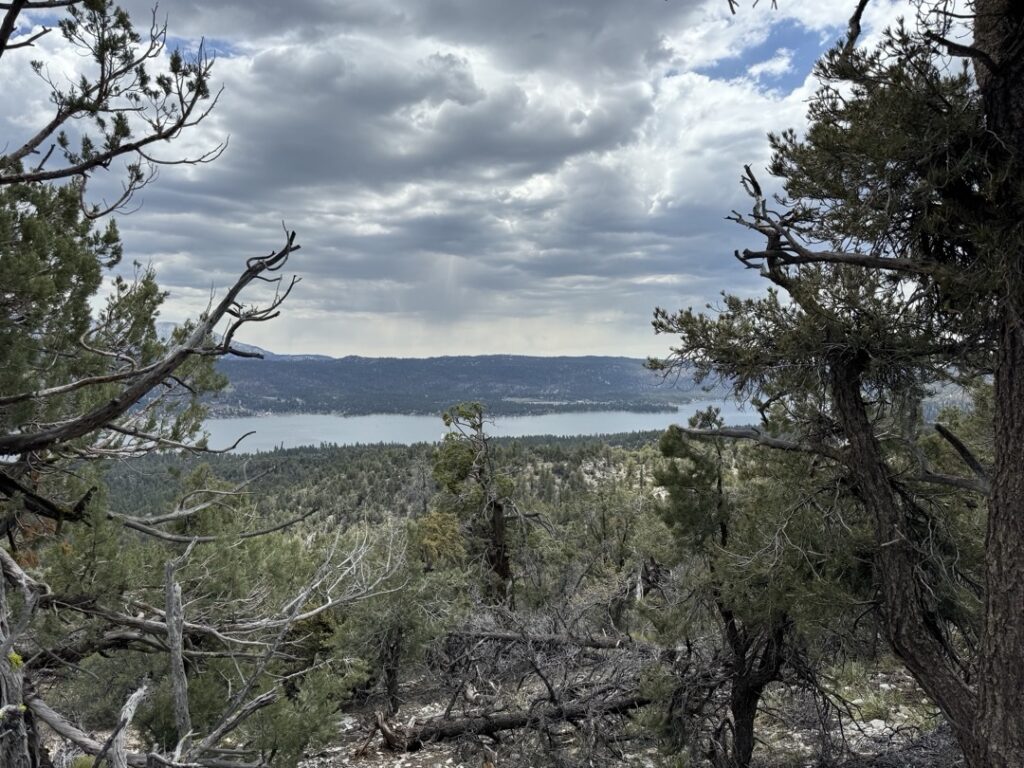 So bin ich mit meinem 15 kg schweren Rucksack losgelaufen. Ich habe Lebensmittel für rund fünf Tage dabei und Wasser für die ersten 15 km. Zu Beginn stieg der Weg leicht an, und gab nach circa 3 Stunden einen wunderschönen Blick frei über den Big Bear Lake.
