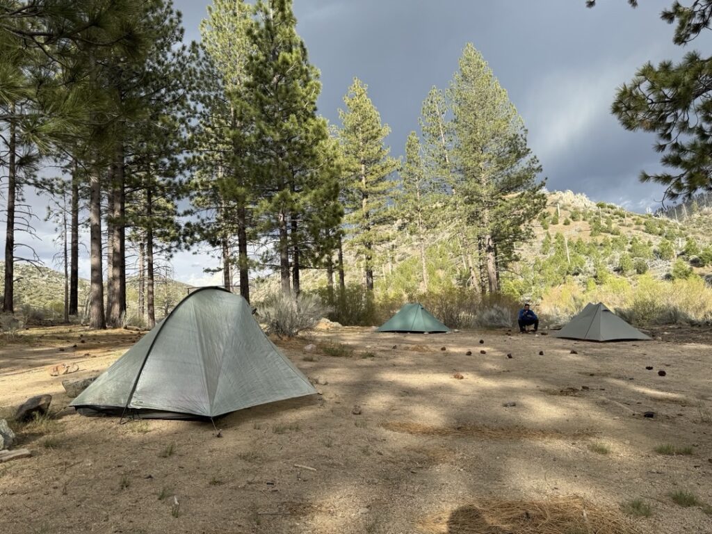 Für die ersten 15 km benötigte ich nur rund 1 l Wasser. Das ist sehr wenig aber damit zu erklären, dass es nicht allzu warm ist und auch etwas bewölkt. An dieser Wasserquelle habe ich dann ein paar andere Wanderer getroffen, welche sich aber schon nach kurzer Zeit wieder vor oder hinter mir eingeordnet haben. Ursprünglich wollte ich heute etwa 27 km laufen. Dies bis zur nächsten Wasserstelle welche scheinbar auch einen Zeltplatz hat. Das war aber nicht so. So bin ich nochmals etwa 4 km weiter gelaufen, wo ich schlussendlich zu einem grossen Zeltplatz mit Bach gekommen bin. Über ein grösseres Gebiet haben sich circa 20 Personen mit ihren Zelten installiert. Kaum angekommen fing es an zu regnen. Glücklicherweise nur ganz wenig und so blieb meine Ausrüstung trocken. Während rund einer halben Stunde gab es noch diverse Gewitteraktivitäten, dies aber in einer gewissen Entfernung.