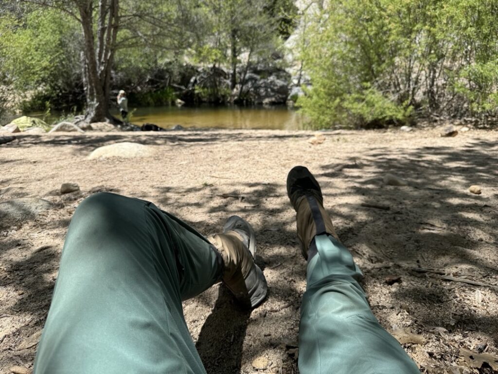 Kaum hatte ich wieder Internet Empfang, gingen diverse Meldungen von Donovan ein. Ich dachte das Donovan am arbeiten ist. Er hat aber noch ein paar Tage frei und so haben wir uns bei der Brücke über den Deep Creek getroffen. Es hat mich gefreut Donovan so unverhofft wieder zu treffen. Wir haben dann etwa 1 Stunde zusammen Pause gemacht und etwas gegessen. Anschliessend haben wir uns entschieden nach circa 10 km zusammen zu laufen, bis zu einem inoffiziellen Zeltplatz. Auf diesen sind wir über die FarOut App informiert worden.