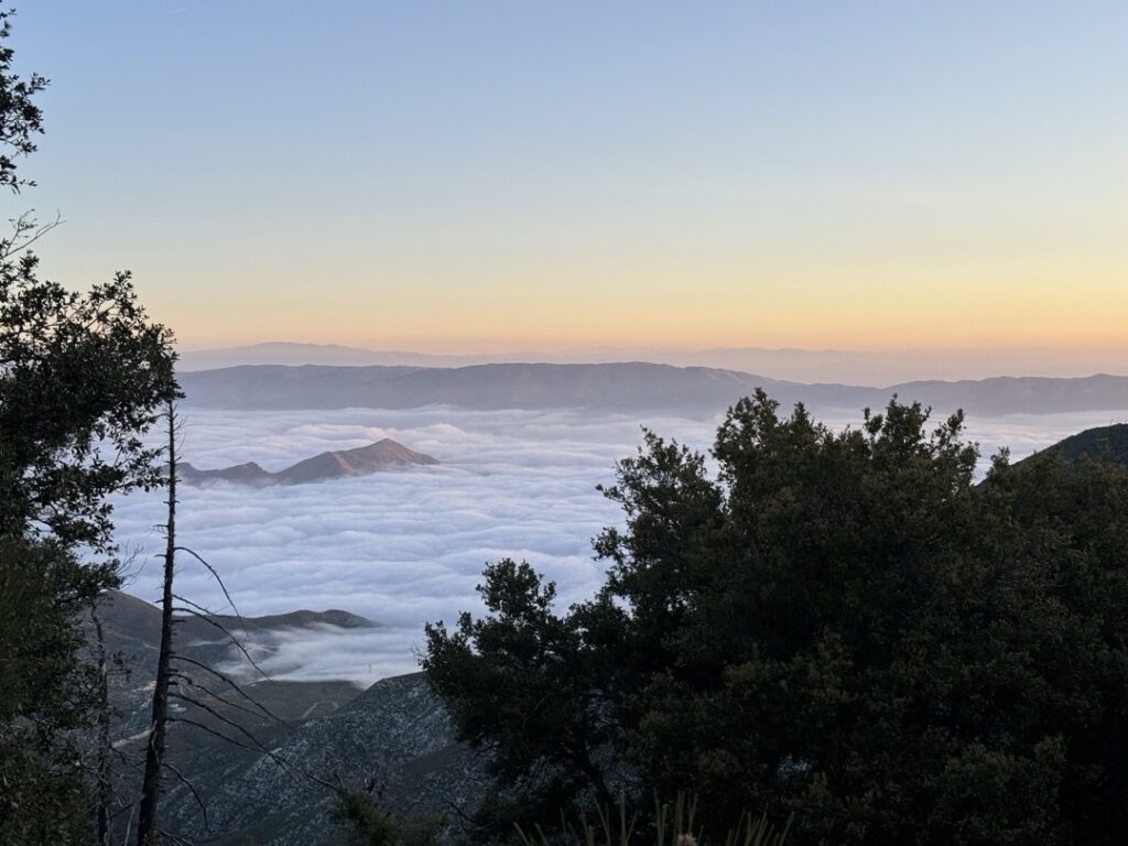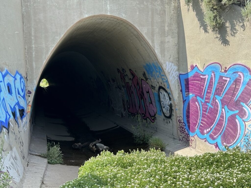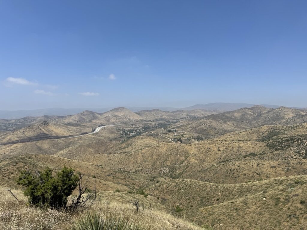 Bei rund 1’200 m kam ich dann in die Nebelsuppe rein. Es wurde sogleich kühler, was sehr angenehm zum laufen war. Etwa um 11:30 Uhr hat sich der Nebel gelichtet und die Sonne kam hervor. Dies war die Zeit als ich beim Parkplatz des Indien Canyon angekommen bin. Ich habe dort eine kurze Pause gemacht und bin dann weiter gelaufen. Ich wollte vor dem Mittagessen noch etwas an Höhe hinter mich bringen. Daher bin ich nochmals 6 km den Hang hoch gelaufen und habe bei Kilometer 29 Mittagspause gemacht. Dabei hatte ich eine super Aussicht auf den Antelope Vally Freeway. Diese trägt die Nummer 15 und war stark befahren. Nach dem Mittagessen ging es runter und unter diesem Freeway hindurch. Gut amerikanisch musste ein Wasserstollen als Fussweg herhalten.