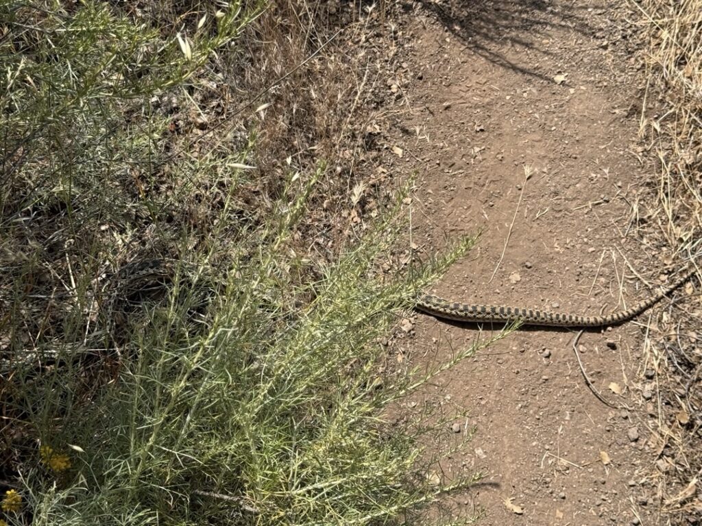 Bevor ich durch den Tunnel gelaufen bin, habe ich wieder mal eine Schlange auf dem Weg angetroffen. Ich habe dann etwas Lärm gemacht, nutzte nichts. Dann hab ich mit meinen Trekking Stöcken vor der Schlange in den Boden geschlagen, nutzte nichts. Dann habe ich die Schlange mit meinem Trekking Stock berührt, nutzte nichts. Da war ich sicher die Schlange ist tot. Bei der dritten Berührung, wurde die Schlange aber sehr lebendig. Sie hat mich dann etwas angefaucht und anschliessend das Weite gesucht.