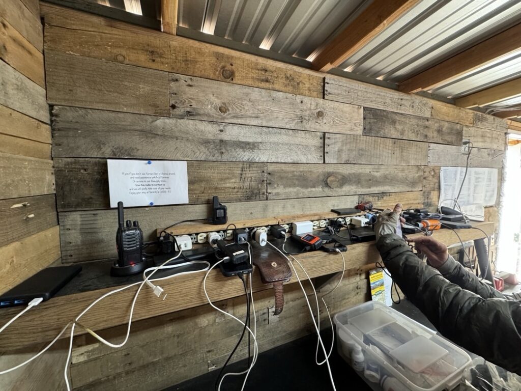 Zudem können auch die elektronischen Geräte geladen werden. Das sieht ziemlich abenteuerlich aus, wenn sich Steckdose an Steckdose reiht. Dies zeigt wie elementar die Energieversorgung ist.