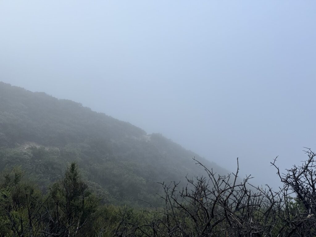 Der Morgen startete dann wie der vorherige aufgehört hat. Es war feucht und neblig. Die Feuchtigkeit hat auch ihren Weg in mein Zelt gefunden. Alles was nicht in einem Packsack gut verschlossen war, bekam etwas von der Feuchtigkeit ab. Um 6:30 Uhr bin ich abgelaufen, ich war froh dass es zuerst den Hang hinauf ging, da ich kühl hatte. Das Highlight war dann die Sonne ab circa 1‘250m. An anderen Tagen hätte ich mir immer etwas weniger Sonne gewünscht, aber heute kam sie mir und allen andern Wanderer sehr gelegen. Der Wind begleitete mich den ganzen Tag. Dieser war meistens kühl.