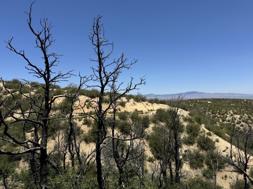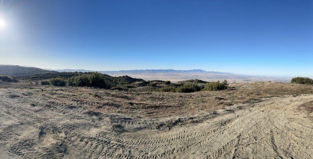 Anschliessend stellte sich die Frage wie weit ich noch laufen soll. Geplant habe ich circa 32 km, bis zu einem Camp Ground. Ich habe dann aber nochmals etwa 7 km angehängt um zu einem Wasserbunker zu kommen. Dabei ging es weniger um den Wasserbunker, sondern darum den kommenden Tag zu verkürzen. Als ich beim Wasserbunker angekommen bin, war ich von der Aussicht in die Ebene erschlagen. Die Aussicht auf die vielen Windräder und die grossen Fotovoltaik Anlagen, war schon ziemlich cool.
