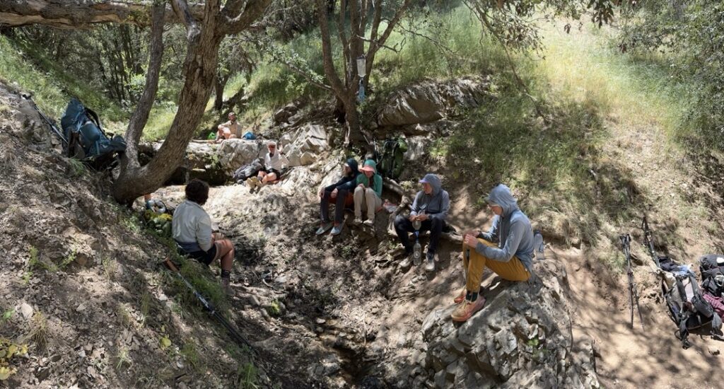 Nach circa 25 km gab es eine gute Wasserstelle. Wie oft haben sich dort die Wanderer gesammelt. Für mich ist das immer ein spannender Ort, da nicht nur Wasser abgefüllt wird, sondern auch etwas Pause gemacht wird. So besteht immer die Möglichkeit mit den anderen Wanderer zu sprechen.