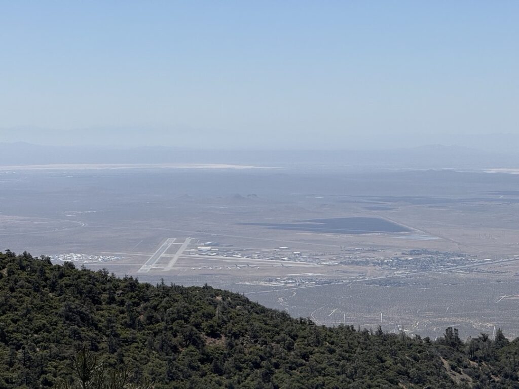 Ich habe gestern Abend die Möglichkeit genutzt, noch etwas TV zu schauen. Dabei haben mich vor allem die Informationssendungen auf dem Schweizer Fernsehen angesprochen. Kurz nach 22:00 Uhr konnte ich dann meine Augen nicht mehr offen halten. Ich war dann der erste welcher sie sich in seinen Schlafsack verkrochen hat. Ich bin dann sehr schnell eingeschlafen und habe nicht mal gemerkt, als die anderen vom Nachtessen zurückkommen sind. Ich habe einigermassen gut geschlafen und bin um 5:00 Uhr aufgestanden. Ich habe meine Ausrüstung so leise es ging zusammengepackt. Dann habe ich mich noch etwas an der Snackbar bedient und gewartet bis um 6:30 Uhr Adhnan, der Uber Fahrer, bei mir war. Für nur 20 $ (das war eine Fahrt von circa 20 Minuten) hat mich Adhnan bis dorthin gefahren wo ich gestern eine Mitfahrgelegenheit angeboten bekam. Dies war rund 2 km vor dem Highway 58. Von dort ging es dann zügig den Berg hoch, wie immer in schönen und nicht allzu steilen Serpentinen. Ich habe die Zeit genutzt um ein paar Telefongespräche zu führen. Für mich ist das ein wichtiger Teil mit meiner Familie und meinen Freunden in Kontakt zu bleiben. Ralph R. hat davon erzählt, dass es in der Nähe einen Flughafen geben soll. Und zwar ein Flughafen, auf welchem Flugzeuge für längere Zeit abgestellt werden. Der Zufall wollte es, dass ich genau diesen Flughafen (Mojave) etwa 2 Stunde später von oben gesehen habe.