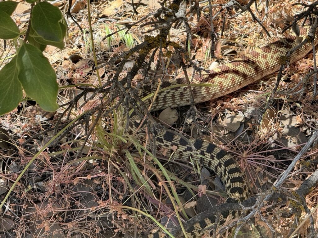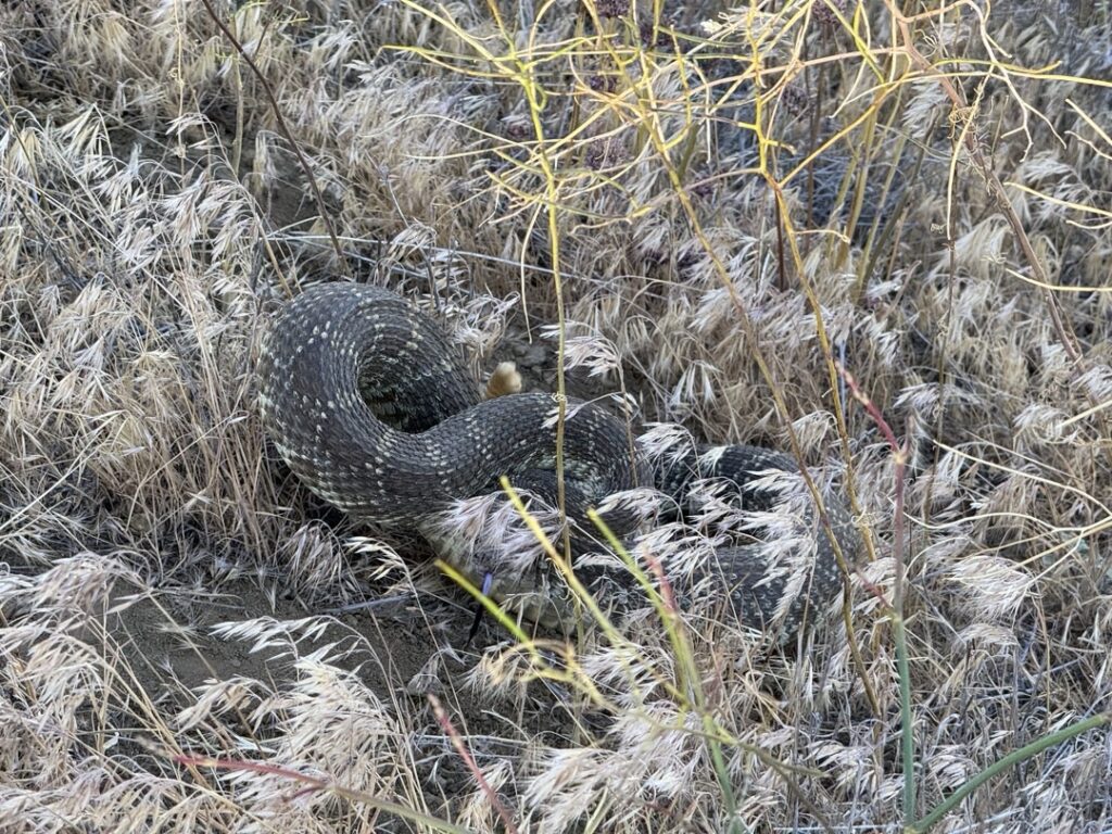Dann habe ich heute wieder mal zwei Schlangen gesehen, eine davon ohne Klappergeräusch die andere mit Klappergeräusch. Ich habe eben Musik von den Dire Straits gehört (Telegraph Road) und dachte seit wann benutzen diese eine Rassel in diesem Stück. Habe dann schnell festgestellt, dass es neben mir rasselt. Die Klapperschlange möchte nur verhindern dass man auf sie tritt, daher die Warnung. In einem Facebook Artikel habe ich gelesen, dass bei einem Test nur 3 % der Leute gebissen werden, welche auf eine Klapperschlange treten. Mit diesem Wissen bin ich vorsichtig um die Klapperschlange rumgelaufen und wir beide hat unseren Frieden.