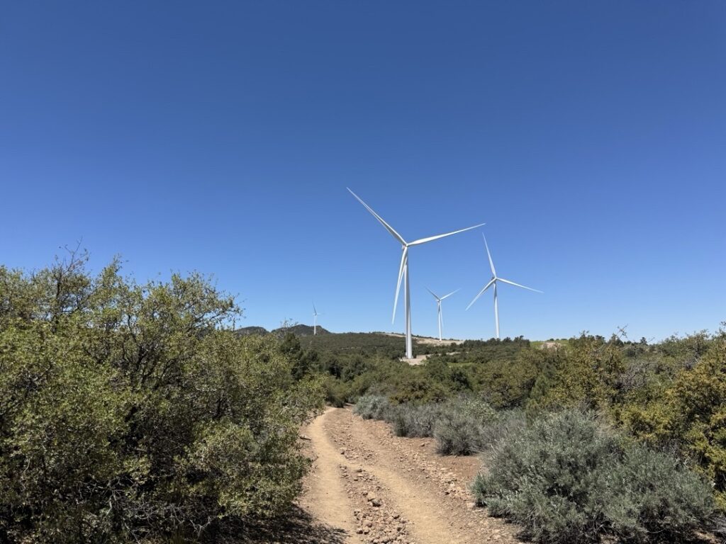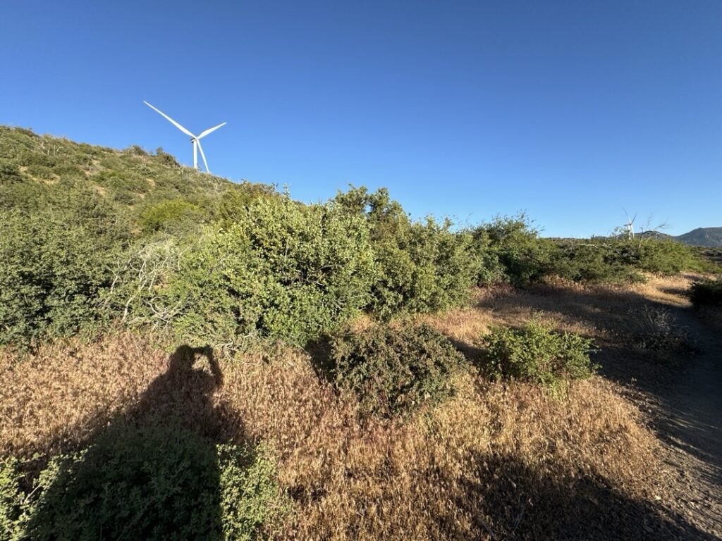Bei Kilometer 35 habe ich Fabian und Marlena getroffen. Diese hatten in einem kleinen Wäldchen einen wunderschönen Zeltplatz gefunden. Es hätte noch mehr Platz gehabt, aber ich wollte heute circa 40 km laufen. Die Herausforderung war dann einen Wind geschützten Zeltplatz zu finden. Ich habe dann einen solchen, hoffentlich, hinter einer Buschreihe gefunden. Mal schauen ob ich es diesmal besser gemacht habe als beim letzten Mal. Im Moment ist es bei mir 20:00 Uhr und die Sonne ist eben hinter einem Hügel verschwunden. Im Moment hat es fast keinen Wind und ich bin daher guter Hoffnung, dass ich heute gut schlafen kann. Das Rauschen der Windturbinen werde ich ertragen müssen.