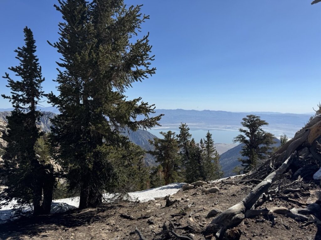 Nach circa 2 Stunden laufen habe ich morgen gegessen. Neu besteht mein Morgenessen aus Haferflocken, Schokoladenpulver, Wasser und etwas Olivenöl. Um 9:00 Uhr kamen wir bei einer Bergscharte an. Von dieser sah man schön auf den Owens Lake runter. Mike hat mir erklärt, dass dieser See für die Trinkwasserversorgung von Los Angeles benötigt wird.