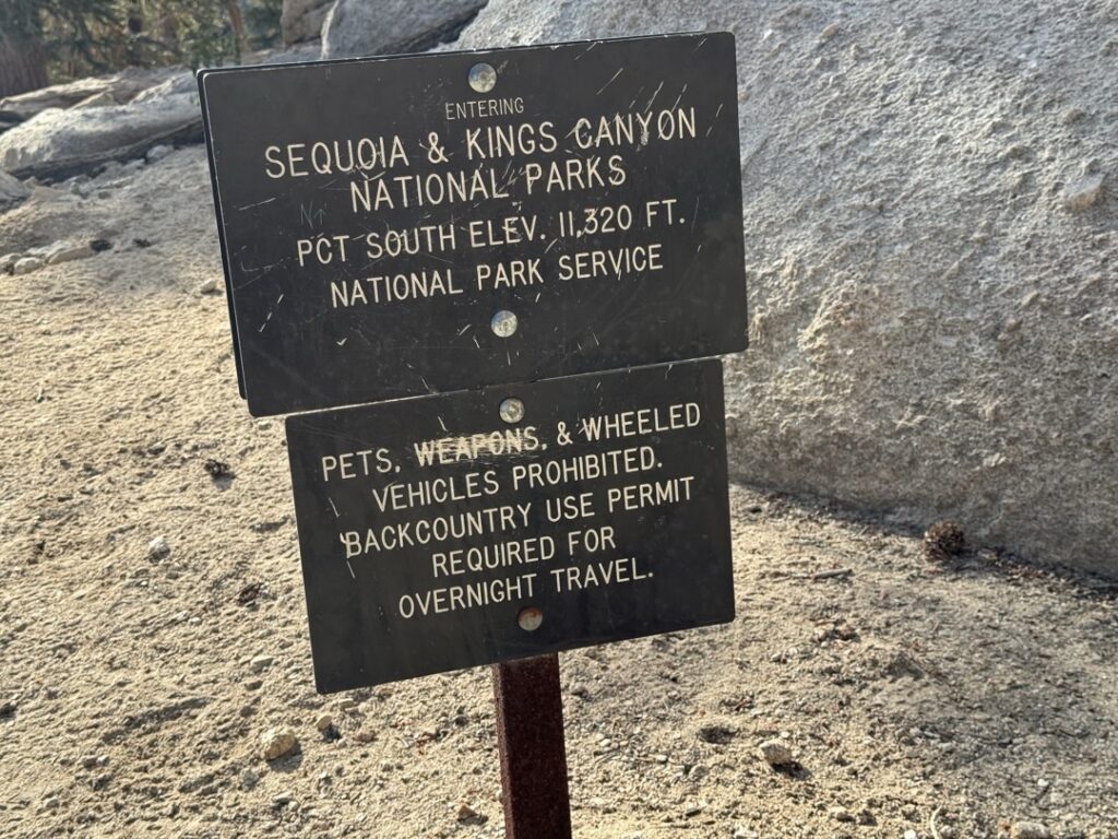 Hört sich Mike und ich bei einer Wasserstelle wieder getroffen haben, haben wir nochmals über unser Tagesziel diskutiert. Ich habe mir etwas nach 25 Meilen (40 km) rausgesucht. Mike hatte dann die Idee das ist bis zum Sequoia National Park, Campground laufen könnten. Das war nochmals circa 3 Meilen, beziehungsweise 5 km weiter. Wir haben uns entschieden zu diesem Campground zu laufen. So wird der morgige Tag etwas kürzer, was für uns auch ganz o. k. ist. Morgen geht es darum, dass wir kurz vor dem Forester Pass campen können. Der Forester Pass ist der höchste Punkt auf dem PCT. Dies mit rund 4’000 m.