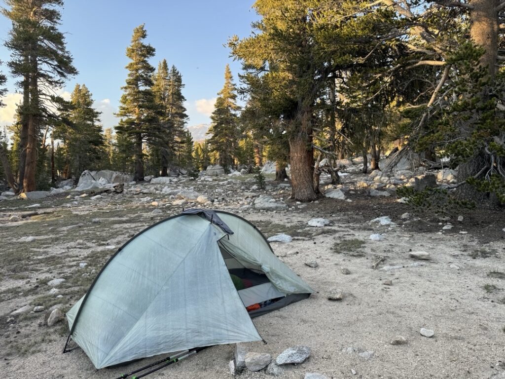 Als wir auf dem Sequoia National Park, Campground ankamen, war dieser leer. Wir haben zudem erwartet, dass es in der Nähe Wasser gibt. Das war aber nicht wirklich der Fall. So hat sich Mike, netterweise um die Wasserversorgung gekümmert. Dazu musste er zu einer Wasserquelle laufen. Ich war dafür dankbar, da meine Füsse keine grosse Lust mehr hatten sich zu bewegen.