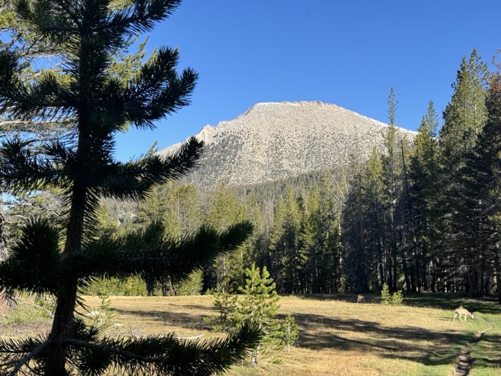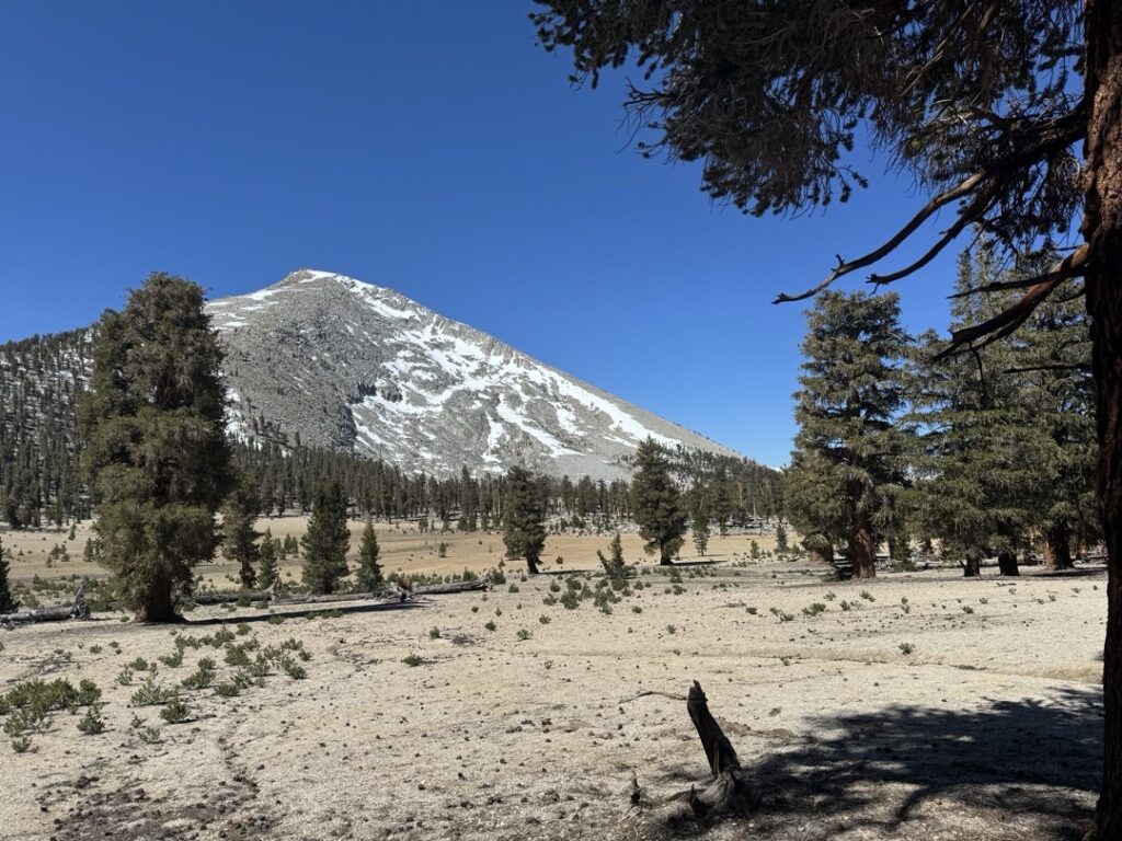Für die Insider. Wir sind heute an der Abzweigung vorbeigelaufen, an welcher man zum Mount Whitney kommt. Dies ist der höchste Berg der USA, ausgenommen Alaska. Ursprünglich hatte ich mal die Idee auf diesen Berggipfel zu laufen. Im Moment sind meine Gedanken aber viel mehr beim PCT. So das es ziemlich stimmig ist, diesen Berg nicht bestiegen zu haben. Mike hat mir die Entscheidung überlassen. Da er nicht weit entfernt wohnt, kann er den Berggipfel jederzeit besteigen.