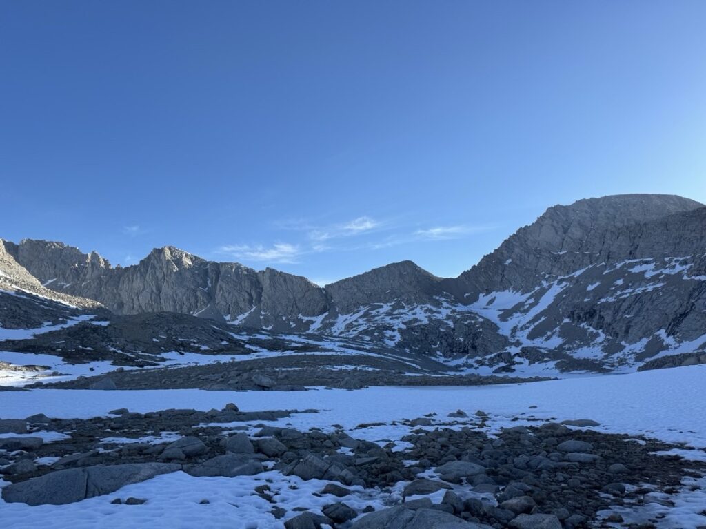 Der Tyndall Creek, neben welchem ich mein Zelt aufgeschlagen habe, ist in der Nacht nicht leiser geworden. Das Geräusch der Wassermassen hat mich in den Schlaf begleitet. Meine Gedanken waren aber ständig beim heutigen Tag. Heute ging es darum den höchsten Punkt des PCT zu überqueren. Dies ist der Forester Pass welcher knapp über 4’000 m hoch ist.