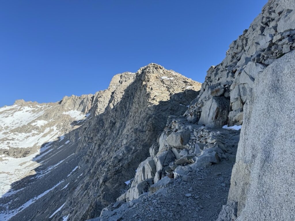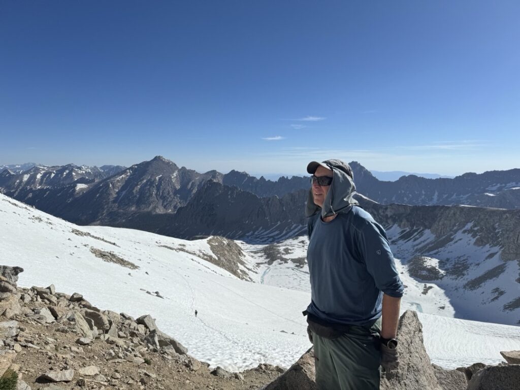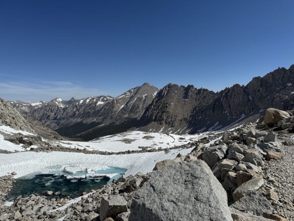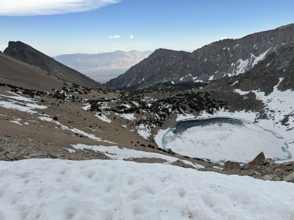 Anschliessend ging es rund 1’200 Höhenmeter runter. In Gedanken versunken habe ich es dann wirklich geschafft mich zu verlaufen. Das gebe ich ungern zu, war aber so. Um wieder auf den Weg zu kommen bin ich dann Freistil durch die Gegend gelaufen. Netterweise hat Mike auf mich gewartet. Als wir auf 2’800 m angekommen sind, ginge es wieder rund 400 m hinauf, wo wir dann zu Mittag gegessen haben. Anschliessend ging es nochmals circa 400 m hinauf bis zum Kearsarge Pass auf 3’600 m. Auch von diesem Pass aus war die Aussicht grandios. Dann ging es während rund 2 Stunden rund 800 m hinunter, dies bis zum Kearsarge Pass Trailhead. Dort wartete die Frau von Mike auf uns. Sie hat uns sogleich super bewirtet. Verschiedene Früchte und ein paar gekühlte Getränke. Anschliessend ginge es in einer rund einstündigen Fahrt runter in die Fläche und weiter noch Bishop. Bishop liegt ein ganzes Stück entfernt, hat aber alles was man für ein Resupply benötigt. Daher zieht es viele Wanderer nach Bishop.