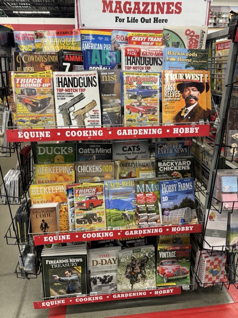 In Oakhurst habe ich den Laden „TSC, Tractor Supply Co“ besichtigt. Eine Art Landi. Spannend ist zum Beispiel was für Zeitschriften verkauft werden.